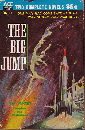 Leigh Brackett’s The Big Jump (1955) is a solid (if predictable) pulp sci-fi adventure with a few delightful poetic moments.  Although Brackett is primarily known for her numerous short stories from the 40s and 50s and screenplays (The Big Sleep, Rio Bravo, The Empire Strikes Back, etc) her novels deserve to be read as well.