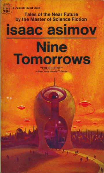 (Paul Lehr’s cover for the 1973 edition of Nine Tomorrows (1959), Isaac Asimov)