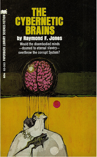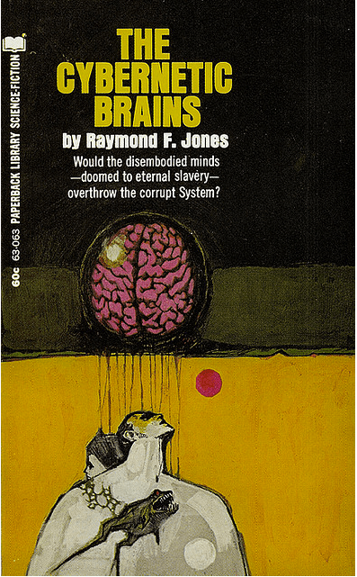 (Jerome Podwil’s cover for the 1969 edition of The Cybernetic Brains (magazine version 1950), Raymond F. Jones)