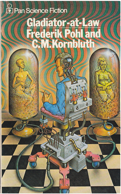 ( Patrick Woodroffe’s cover for the 1974 edition of Gladiator-at-Law (1954), Frederik Pohl and C. M. Kornbluth)