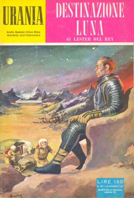 (Carlo Jacono’s cover for the 1957 edition of Mission to the Moon (1956), Lester Del Rey)