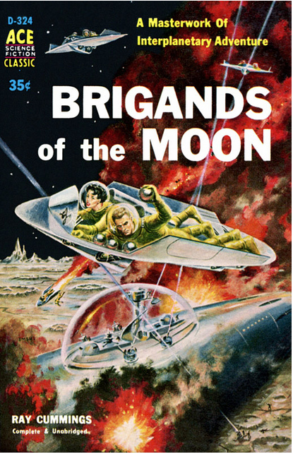 (Ed Emshwiller’s cover for the 1958 edition of Brigands of the Moon (1930), Ray Cummings)