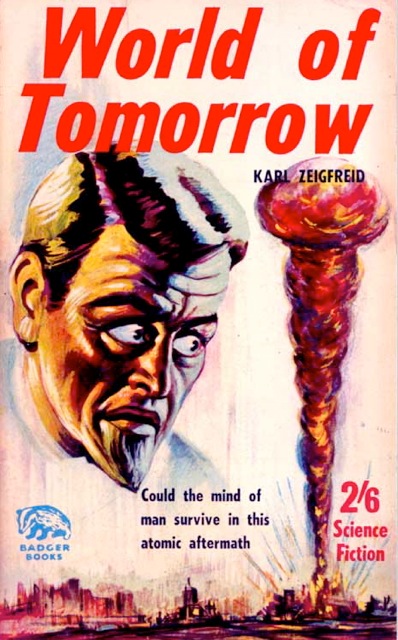 As with Part I, I’ve included some covers from the notorious hackwork spewing conveyor belt publisher Badger Books for giggles and laughs. The mushroom cloud on The World of Tomorrow (1963) cover is positioned to not overlap the man’s gigantic looming face. As a result its narrow tapered shape looks more like a radish connected to a carrot than a massive sign of destruction.