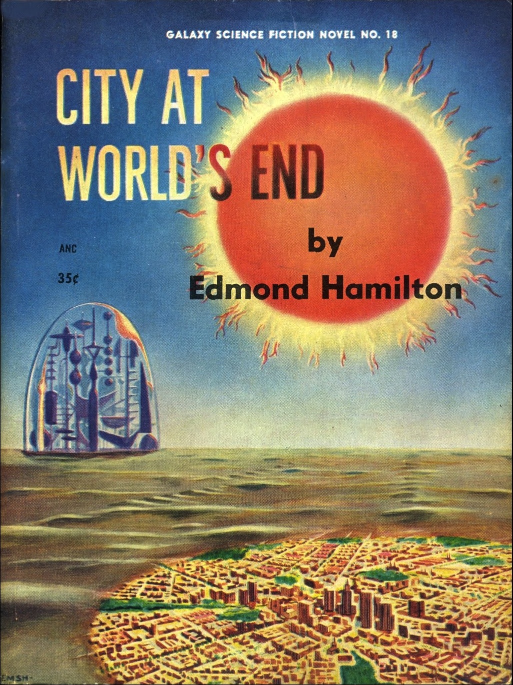 (Ed Emshwiller’s cover for the 1953 edition of City at World’s End (1950), Edmond Hamilton)