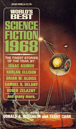 (Jack Gaughan’s cover for the 1968 edition of World’s Best Science Fiction: 1968 (1968), ed. Donald A. Wollheim and Terry Carr)