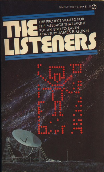I loved James E. Gunn’s The Joy Makers (1961) and found the collection Station in Space (1958) quite solid… Thus, I snatched up a lot of Gunn’s fix-up novels and short story collections from ebay…. It is often difficult to distinguish Gunn’s short story collections from his novels due to the fact that his favorite form tended to be the novella and novelette — after their original magazine publications they were combined into “proper novels” or existing novellas, for example ‘The Listeners’ (1968), were expanded to novel length.