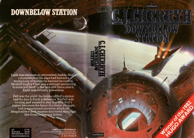 (Chris Moore’s cover for the 1983 edition of Downbelow Station (1981), C. J. Cherryh)