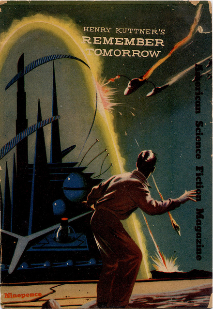 (Ley Kenyon’s cover for the 1953 edition of Adventures in Tomorrow (1951), ed. Kendell F. Crossen)