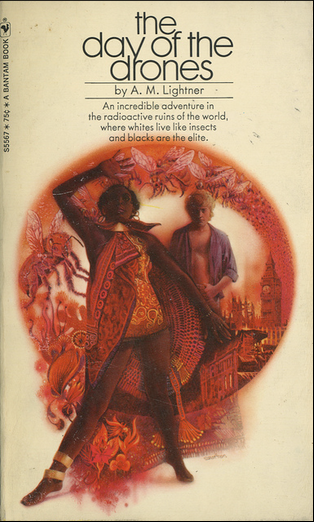 From the back cover: “Possible? Probable? Predictable?  For Amhara’s people, black is beautiful and white is taboo.  In Evan’s primitive, superstition-ridden white world, people live like bees, and he is a drone.  Their defiant romance forces them to flee for their lives, in a world where England is leveled and radioactive and Africa alone holds the promise of continued civilization.  A thrilling, exciting adventure of the future.”