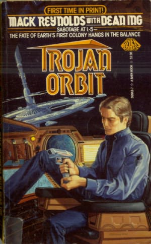 (Tom Kidd’s cover for the 1985 edition of Trojan Orbit (1985), Mack Reynolds with Dean Ing)