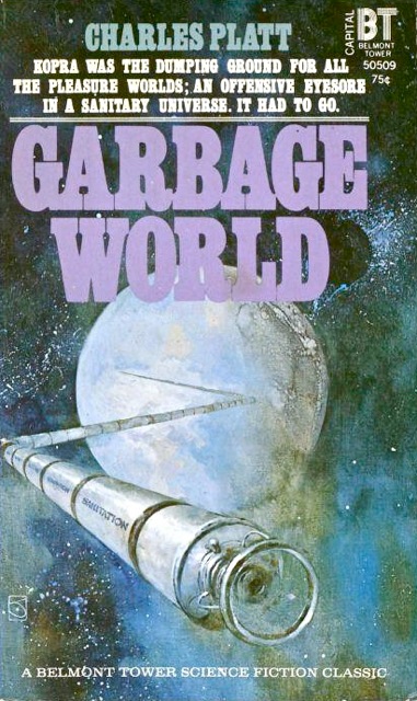 Platt attempts to chart similarly subversive waters. At the core Garbage World is a SF juvenile: morally upright man encounters and wins woman and saves the planet. But, here the world worth saving is a ball of trash, and everyone on the planet is covered with trash, and governs the entire social structure of the society—like Aldiss’ aliens in The Dark Light-Years, Kopra’s inhabitants revel in their environment. Consciously or unconsciously, Platt conveys the entire work in the vocabulary of a SF juvenile. The language is simple, clunky, and superficial. An intriguing exercise, but ultimately, Garbage World is about as engaging as finding a fecal remnant left by my cat which just missed the litterbox. Darn cat.