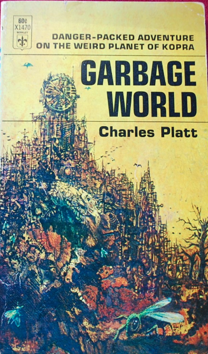 Platt’s first novel, Garbage World (serialized 1966), feels like The Gas‘s SF juvenile little brother i.e. without the transgressive porn but all the intent to shock a 14 year old boy, although it’s never more than “the warmth of the mud mingled with the warmth of their lovemaking” (95). So, what is this tidbit of effluvia all about? First, the silliest part of the novel—the often scatalogical chapter titles: “Garbage Party” (21), “The Hole” ( 57), “The Yellow Rain” (81), “The Defecated Village” (100), “The Great Purgative Plan” (105), etc.