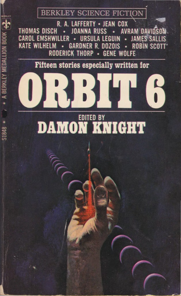 From the back cover: “ORBIT 6 carries on the traditions of excitement and excellence of this continuing anthology of the best, most lively new SF stories being written today. In the three years it has been eligible, ORBIT has received three of the coveted Nebula awards presented by the Science Fiction Writers of America.