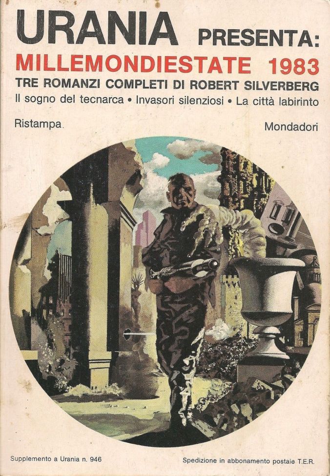 (Karel Thole’s cover for the 1983 Italian edition of Collision Course (1961), The Silent Invaders (1963), and The Man in the Maze (1969), all by Robert Silverberg)