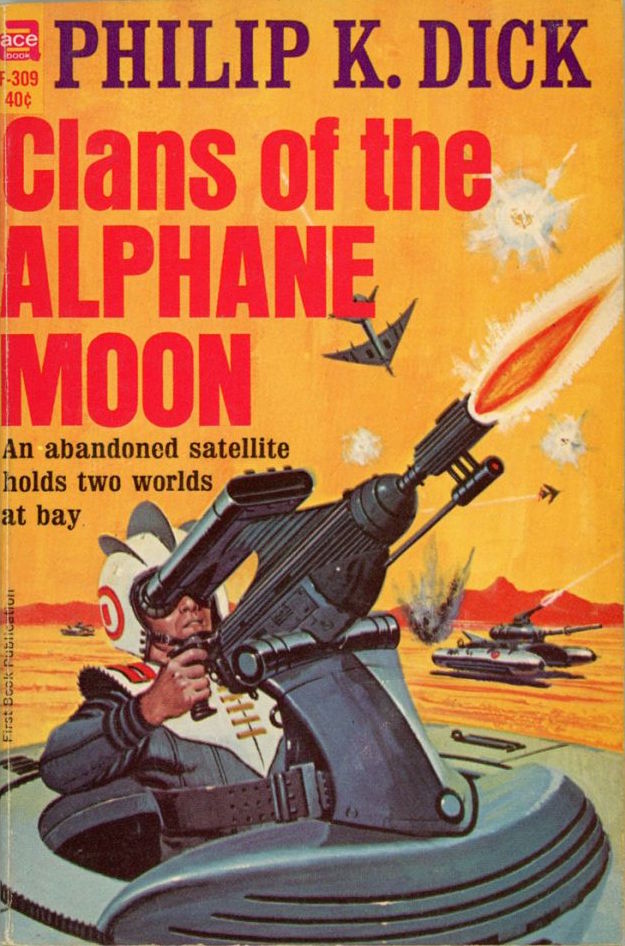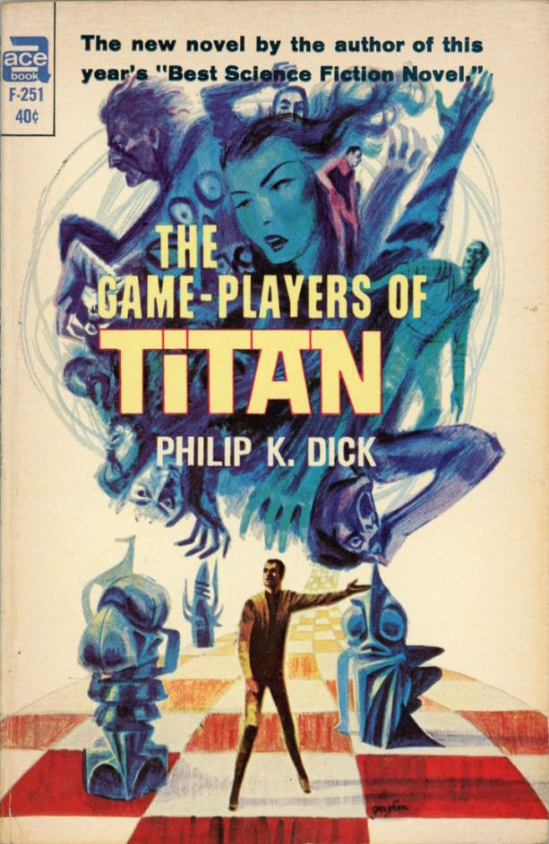 (Ed Valigrusky’s cover for the 1964 edition of Clans of the Alphane Moon (1964), Philip K. Dick)(Jack Gaughan’s cover for the 1963 edition of The Game-Players of Titan (1963), Philip K. Dick)
