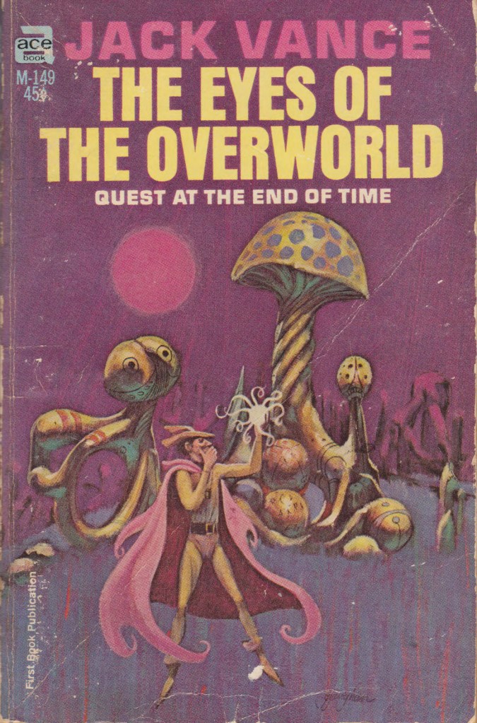(Jack Gaughan’s cover for the 1966 edition of The Eyes of the Overworld (1966), Jack Vance)