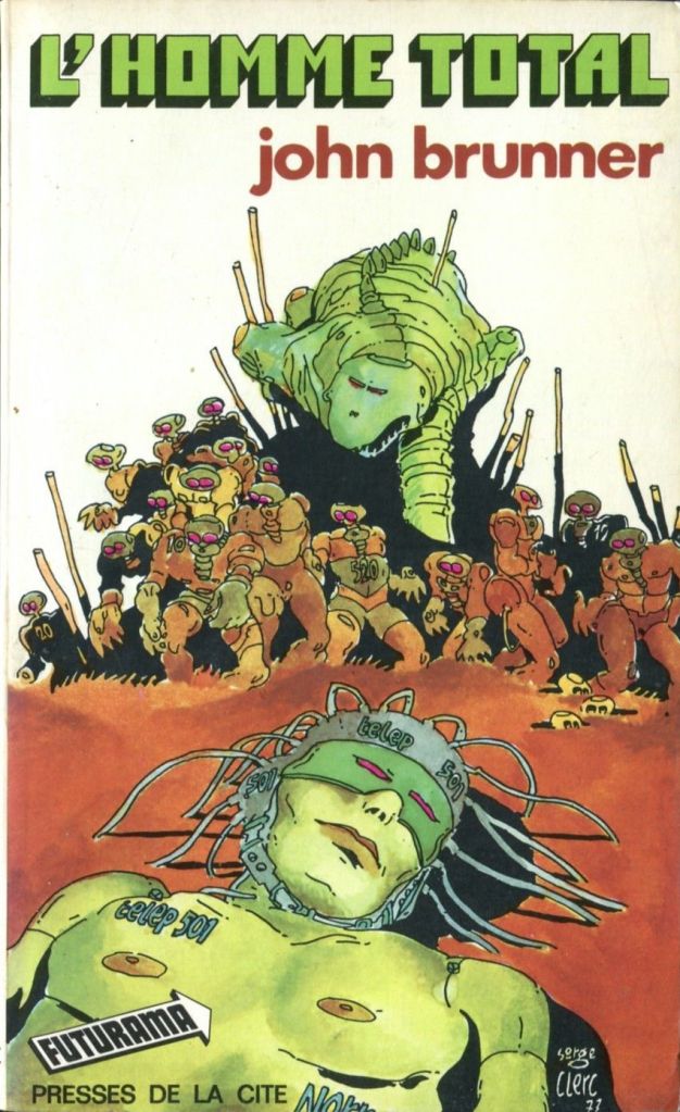 …and they are quite fun in their wacky way. In 1977 for the French Presses de la Cité – Futurama, Serge Clerc created eight covers–gracing works by Brunner, Octavia Butler, E. C. Tubb, and James Gunn–of which I’ve included seven in this post. My favorite is his 1977 edition of John Brunner’s The Dramaturges of Yan (1972). I’ve read three of the four John Brunner novels. The Dramaturges of Yan (1972) might be his single worst novel and Polymath (variant title: Castaways’ World) (1963) was a fun adventure—although not as provoking as Bedlam Planet (1968). The Whole Man (variant title: Telepathist) (1964), a far better novel, definitely marks a turning point in his career.