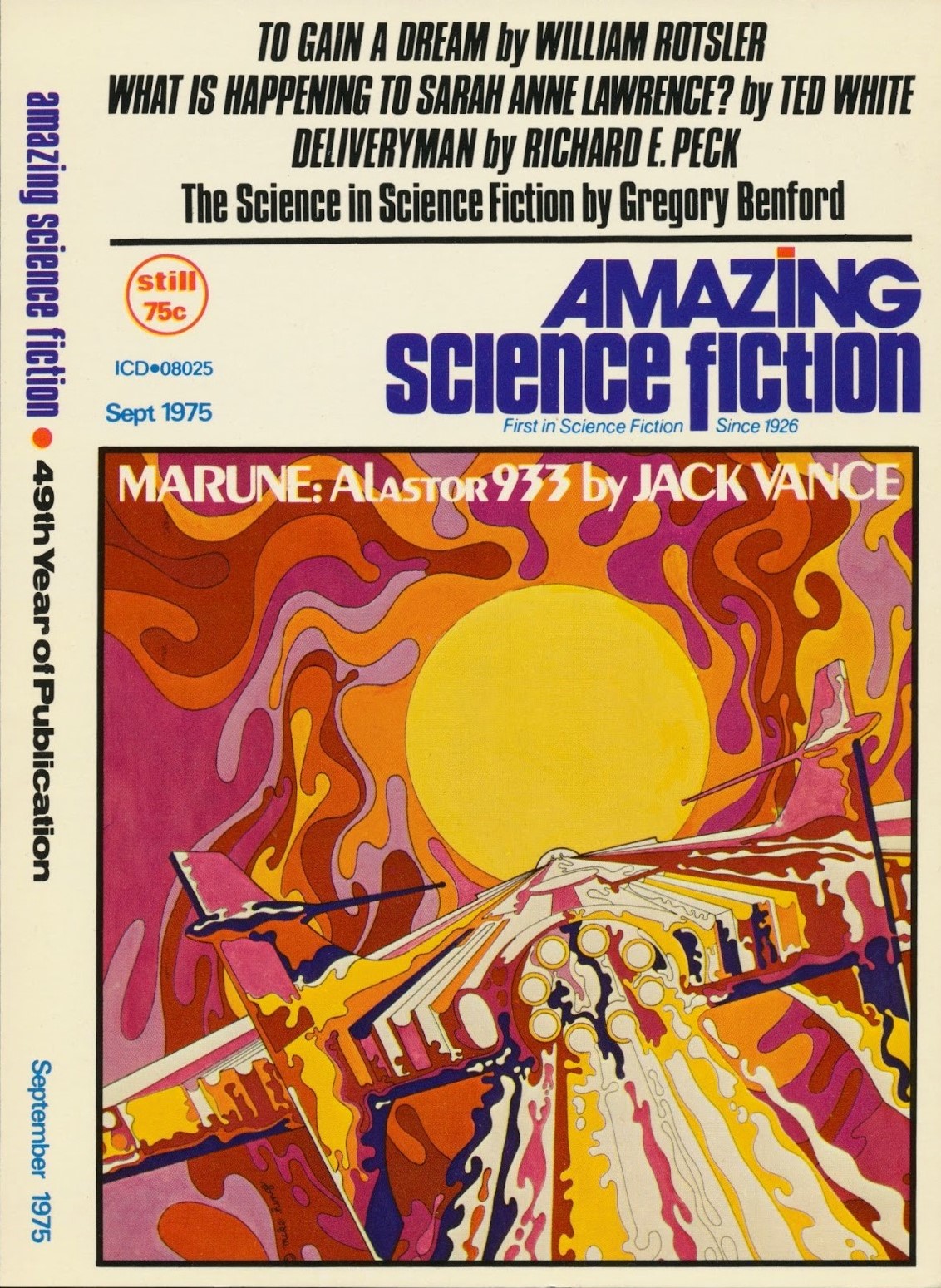 As noted on Twitter — I really did like Hinge’s work,and especially for Ted White’s magazines. I have the issues with the MARUNE cover, and the ARAQNID WINDOW cover — the latter I think the second issue of Amazing I ever bought.