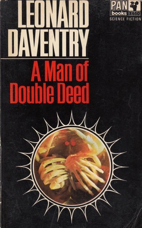 A Man of Double Deed (1965) is a character piece–the focus is Coman and his struggles with telepathy in a violent and unsettled world. While Robert Silverberg’s Dying Inside (1972) painted telepathy with realistic strokes in a believable world, Leonard Daventry blends together a dizzying array of SF themes and ideas, often as bewildering as the emotions bashing against Coman’s mind.
