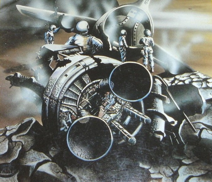 The crashed spaceship — a wrecked hulk spinning in the emptiness of space, shattered metal struts strewn across an alien landscape…. I find few SF scenarios more nostalgic than this one as a younger me was obsessed with books about the societies formed from the survivors of such cataclysms (Anne McCaffrey’s Acorna Universe sequence, of dubious quality now, was a cornerstone of my youth).