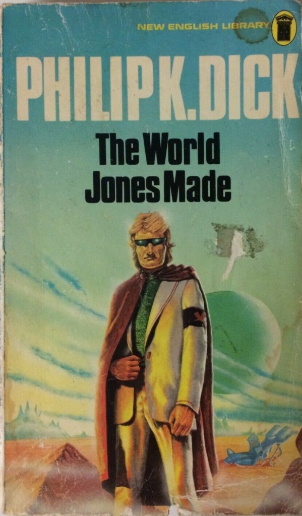 (Terry Oakes’ cover for the 1976 edition of The World Jones Made (1956), Philip K. Dick)