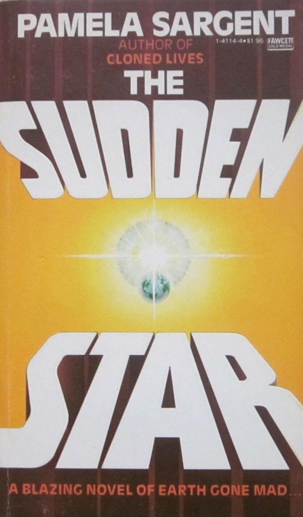 Pamela Sargent’s The Sudden Star (1979) posits the arrival of a “white star” in 2000 AD—initially a source of fascination, later a force of destruction–that transforms society. How the appearance of the “star”–really the light of a dying sun shining through a black hole (6)–turns the world into a cesspool of vice and violence isn’t entirely clear. There are hints of later cataclysms, perhaps caused by its arrival and even a nefarious syndrome named after the star. Sargent seems to suggest that society could, at any time, regress and that the alien sun might trigger humanity’s baser instincts.