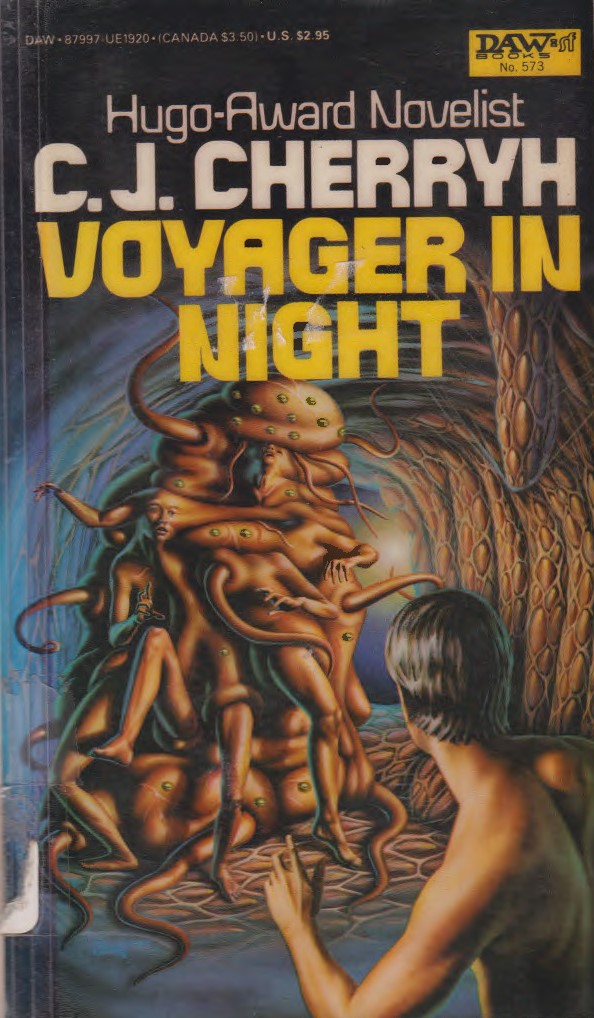 2. I found Voyager in Night strange, but fun. It’s very much a weird mash of haunted house, LotR’s Frodo/Sam/Smeagol triad, and Cherryh’s Merchanter books. It’s light, but sort of the same way PKD can be light, where that’s a benefit so it can play fast and loose with ideas and style.