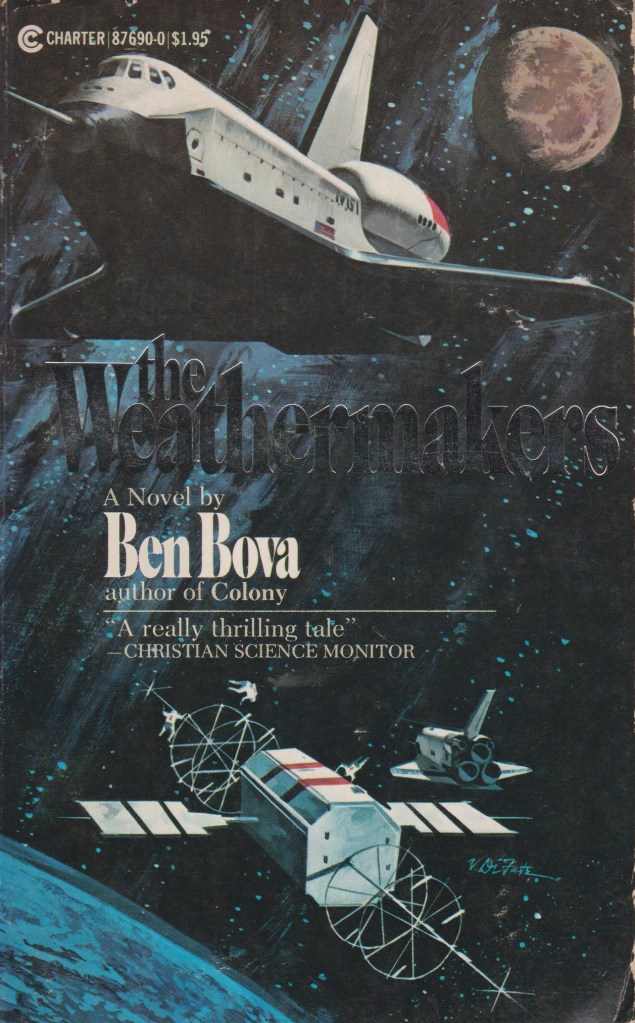 From the back cover: “The weather—everyone complains about it but no one does anything about it. Until Ben Bova’s THE WEATHERMAKERS.