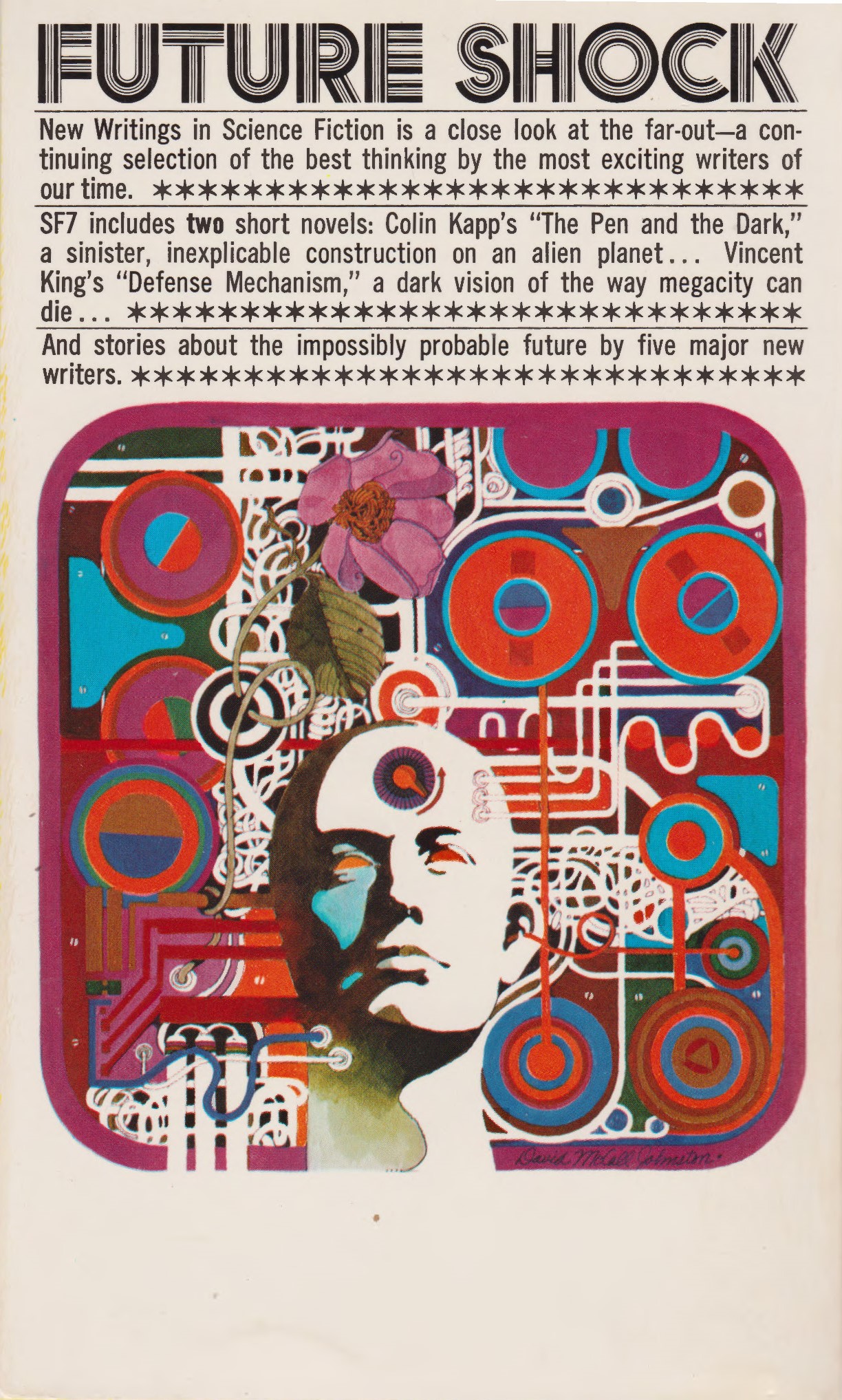 The back cover of New Writings in Science Fiction 7 (1971), ed. John Carnell promises a form of “future shock”—plunging us into a world derived from ours but foreign and alien. Is the collection successful? As with the three other volumes in this anthology series I’ve read—New Writings in SF 4 (1965), New Writings in SF 6 (1965), and New Writings in SF 9 (191972)–the answer is a mixed “somewhat.”