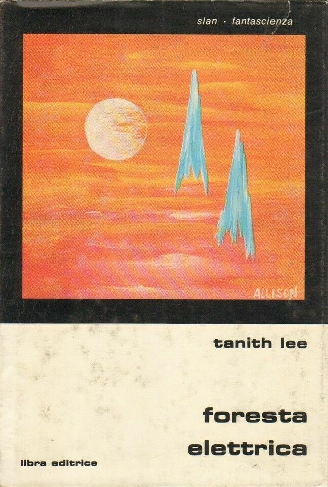 This post combines two of my favorite creators: Tanith Lee–Electric Forest (1979) and Don’t Bite the Sun (1976)–and Allison. While I’m not sure these are Allison’s best covers (see the two posts linked above), the combination weaves a compelling spell. Allison enjoys solitary figures arrayed against an evocative landscape. There’s a brittle isolation that permeates the layers. I am also fascinated by the popularity of Tanith Lee in Italy–most of her early novels were translated and released within a few years in the Italian market.
