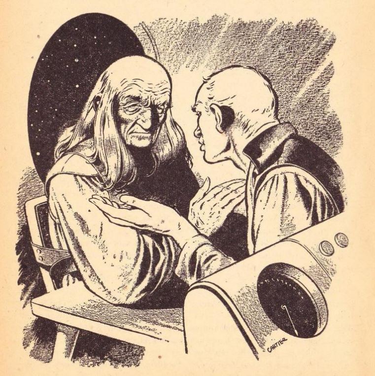 Edd Cartier’s interior art illustrating Chad Oliver’s “Stardust” Astounding Science Fiction (July 1952)