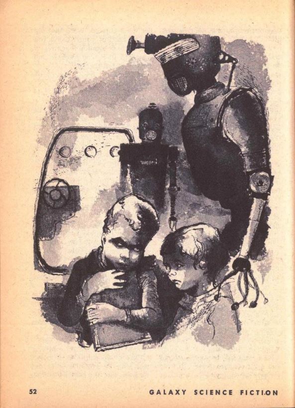 Senz’s interior art illustrating Sellings’ “A Start in Life” in Galaxy Science Fiction (Deptember 1954)