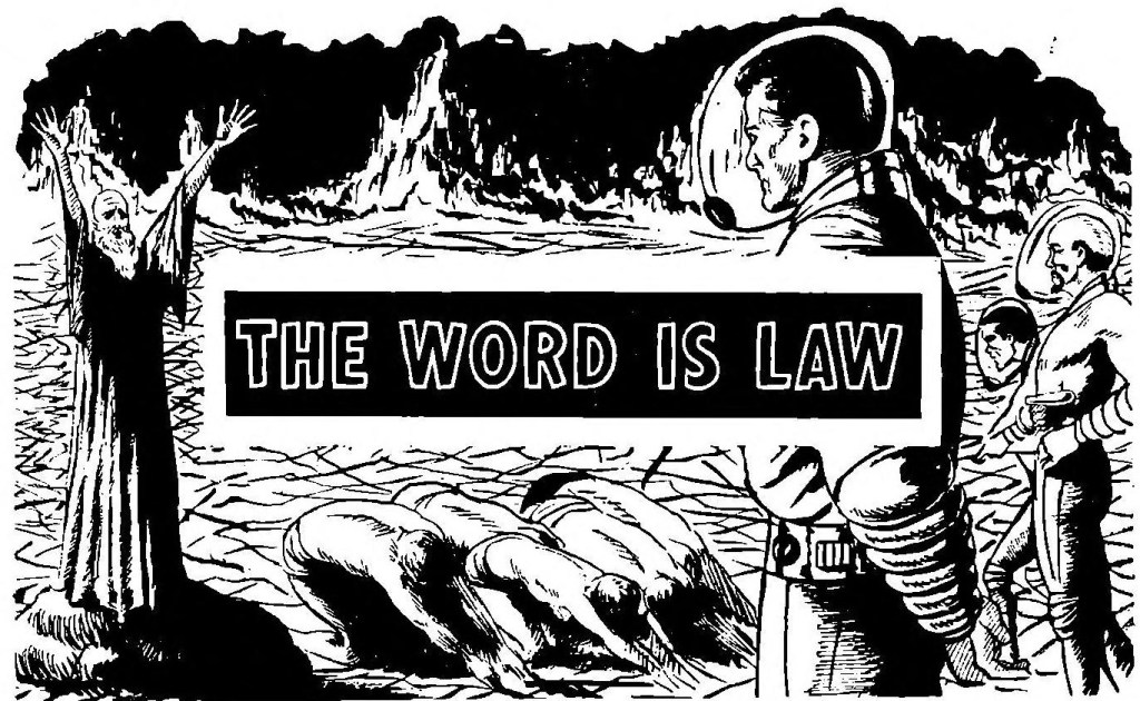 “The Word is Law” (1957), John D. Odom, 1.5/5 (Bad): You can read it online here. John D. Odom’s only published science fiction short story is a clunker! The General Curry arrives on Rigel Three for Captain Carling’s fist mission–“this had been the real thing, quite different from the artificial, practice emergencies created at the academy for spacemen in training” (118). His crew lands on the surface and sees a city. The inhabitants of the planet leave a welcome message: “Welkom Chris ob Nasreth, Savor ob Wold” (120). But there’s a twist… Chris Nazareth is the name of The General Curry‘s navigation officer.