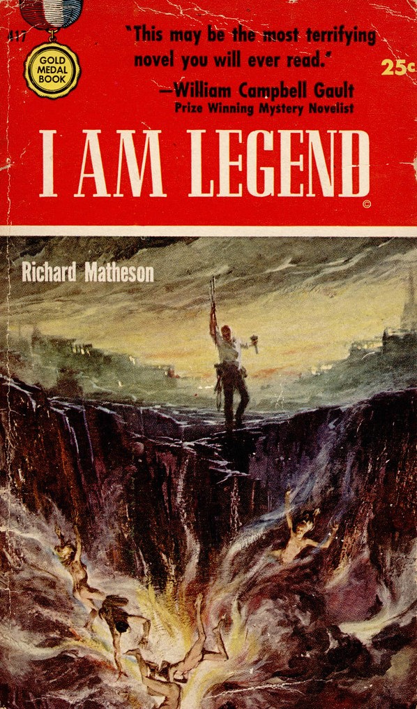 Richard Matheson’s I Am Legend (1954) is an influential SF vampire/zombie novel that spawned three film adaptations (I’ve watched the first two) and inspired directors such as George A. Romero and Danny Boyle, game designers such as Tim Cain (Fallout), and countless authors. The subject of the novel–man attempts to survive an onslaught of vampires, caused by bacterial infection, that act like smart(er) zombies in a post-apocalyptic wasteland–normally isn’t my cup of tea. I’m the first to admit that I picked up the novel entirely due to its historical importance. And I’m somewhat glad I did! While the physical onslaught of vampiric zombies didn’t interest me, the main thrust of the narrative concerns the mechanisms of grief and sexual frustration in the burning wreckage of one-time domestic bliss.