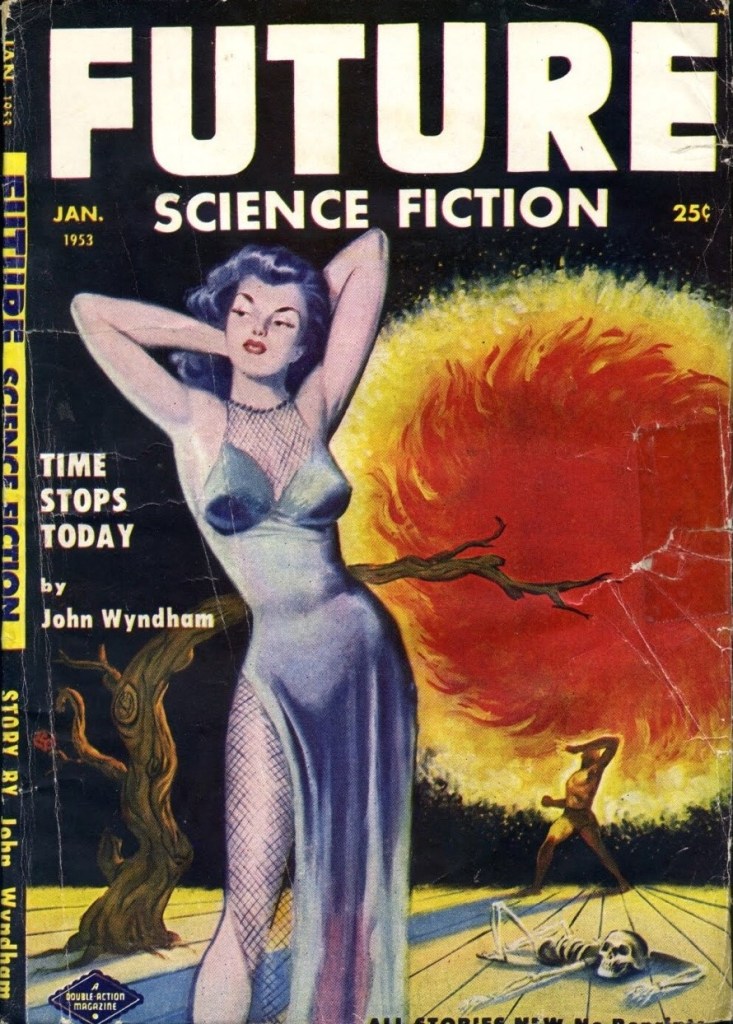“Struggle in the Womb” (1950), 2/5 (Bad) first appeared in Future Combined with Science Fiction Stories, ed. Robert W. Lowndes (May/June 1950). You can read it online here. One of many nuclear gloom short stories in the collection, “Struggle in the Womb” imagines a post-Hiroshima and Nagasaki future in which the genetic ramifications of America’s nuclear weapons reveal themselves.
