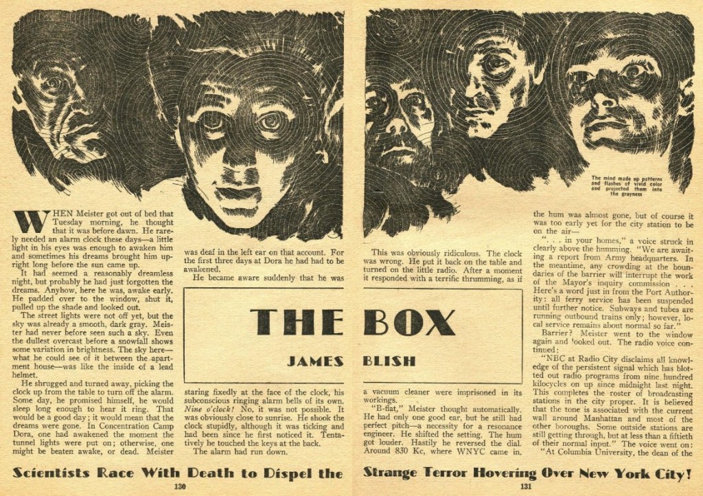 “The Box” shows promise and an attempt to craft a sympathetic and intriguing main character. I’m not entirely sure that the story works as it is bogged down with technobabble and a lack of focus. Blish presents the new anti-nuclear weapon device as yet another technology that can be weaponized and used to destroy those it is meant to protect.