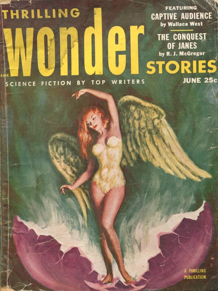 Walter Popp’s cover for Thrilling Wonder Stories, ed. Samuel Mines (June 1953)
