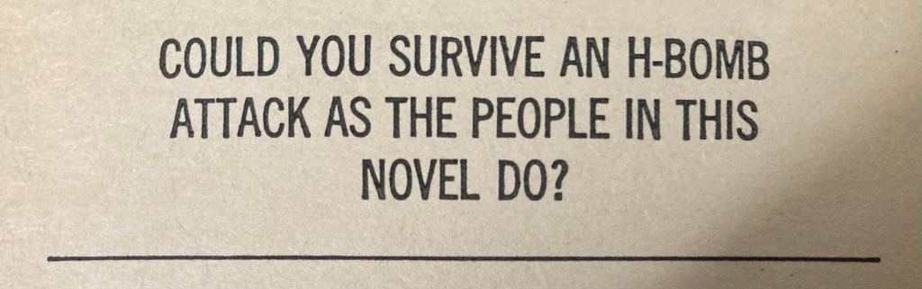It’s one of those iconic late 50s post-apocalyptic novels — of the more positivist (survival is possible) bent than something like On the Beach (1957).
