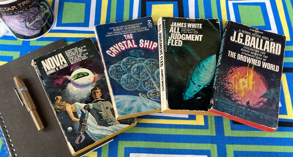 - Samuel R. Delany’s Nova (1968). One of the few SF novels I’ve read three times! Unfortunately, never managed to review it. Of the Delany I’ve read so far, it remains my favorite — followed closely by Babel-17 (1966) and The Einstein Intersection (1967). I have never managed to finished Dhalgren (1975). I should try again!
